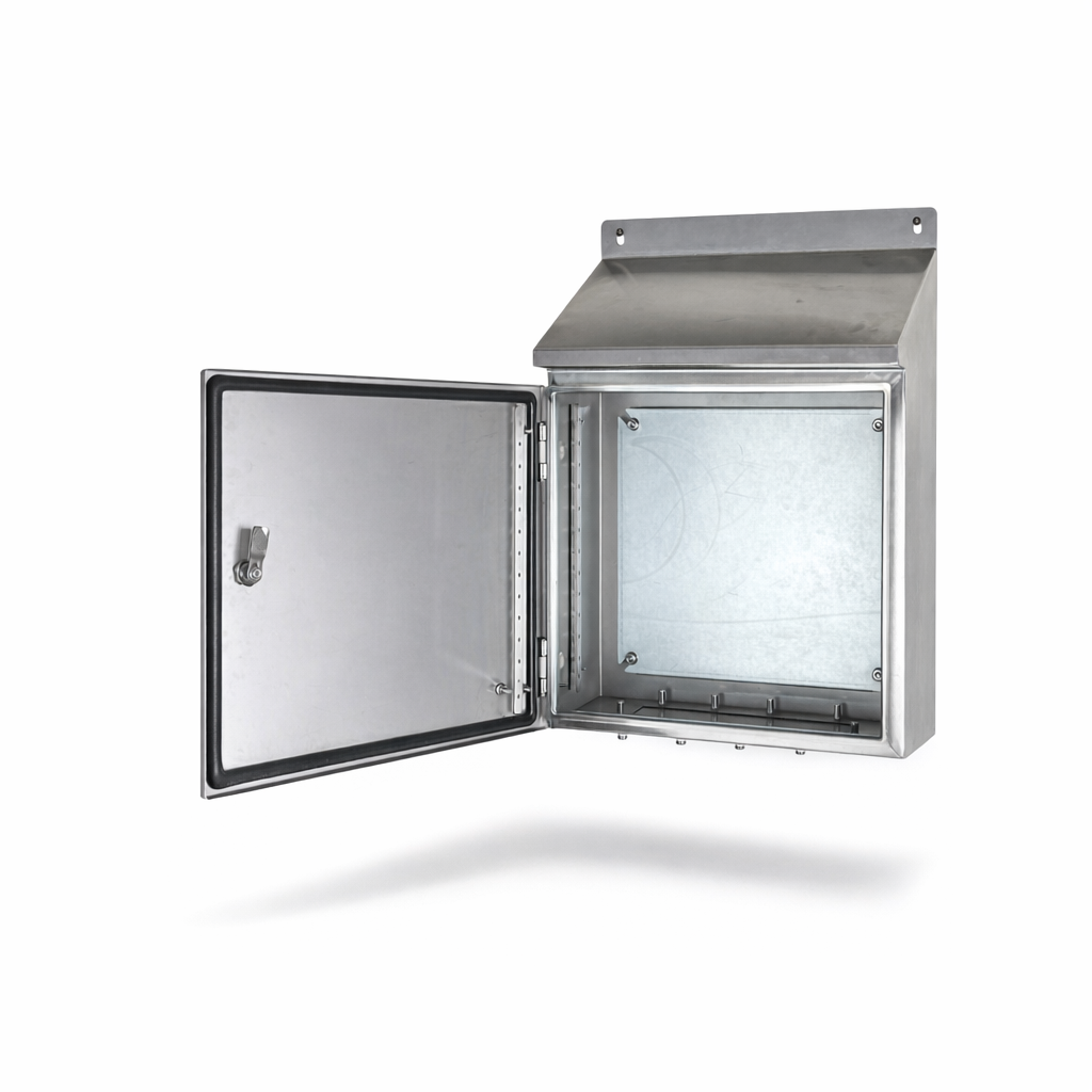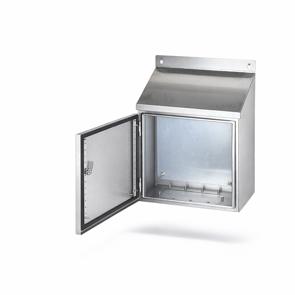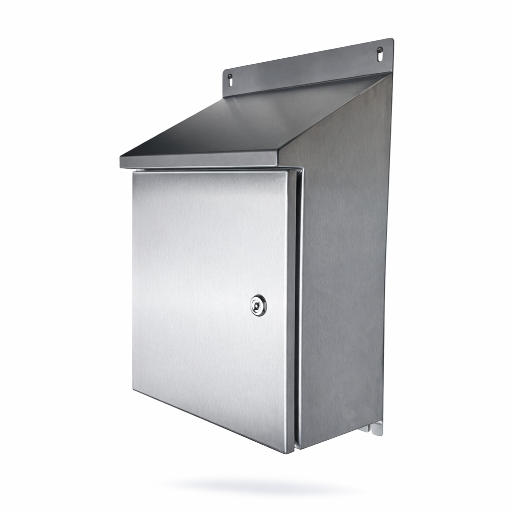 Sloping roof stainless steel enclosure 300x200x150 mm